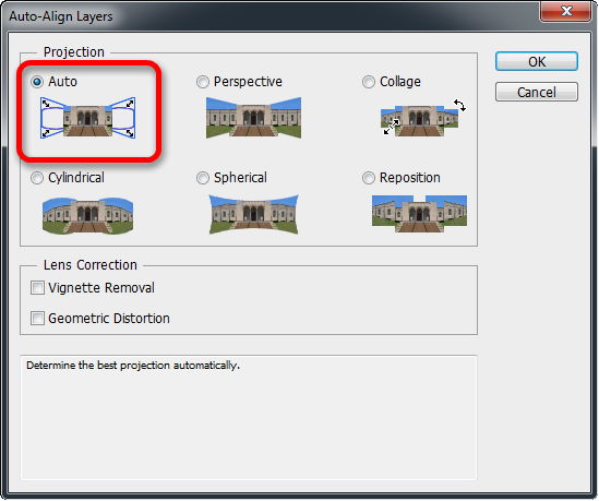 a zvolil jsem příkaz Auto-Align Layers (Automatické zarovnání vrstev) v menu Edit.