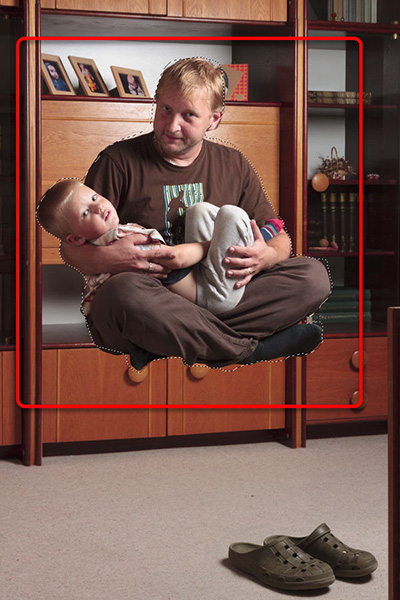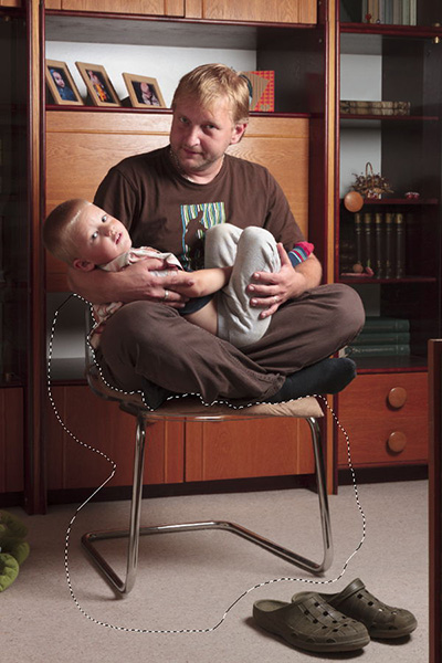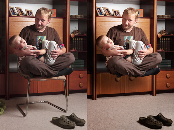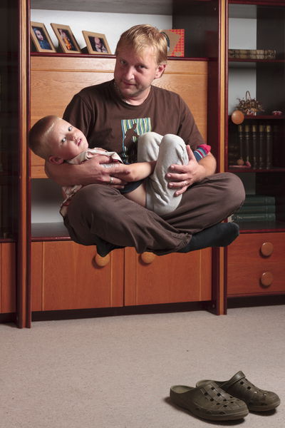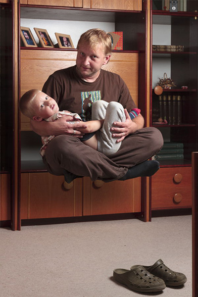Daník má svou hlavu, a když se rozhodl, že se nechá vyfotografovat jako jeho bráška, tedy levitující nad zemí, bylo potřeba neváhat a dokud jeho zájem trval připravit rychle scénu a výbavu pro fotografování. Našel jsem tedy volné místo v obývacím pokoji, nainstaloval zábleskové světlo a pořídil několik fotografií. K závěru fotografování Daník souhlasil, že se nechá zvěčnit i se svým tatínkem. Na této jejich společné fotografii popíši postup tvorby fotografie s levitací.