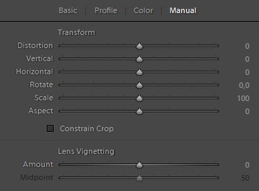 Pokud byste ale přeci jen nebyli s výsledkem úplně spokojeni, můžete provést ruční korekci optických zkreslení na záložce „Manual“.