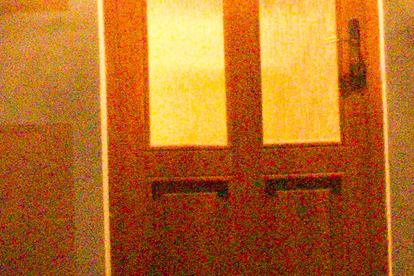 Když se podíváme na snímek pořízený při ISO 12800 bez jakékoliv redukce šumu uvidíme, že barevná složka šumu tvoří prakticky dominantu snímku.