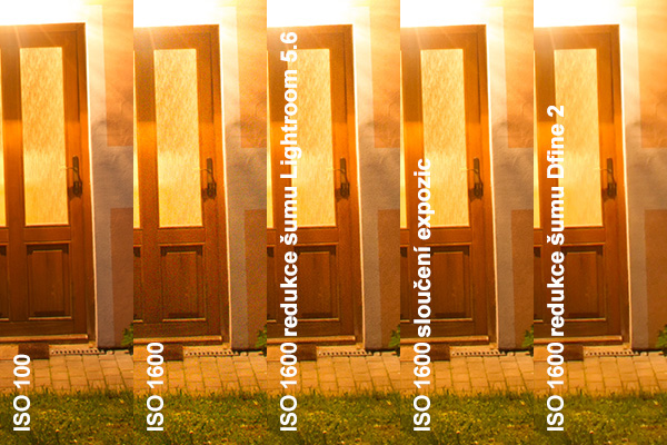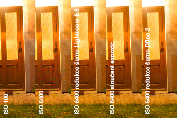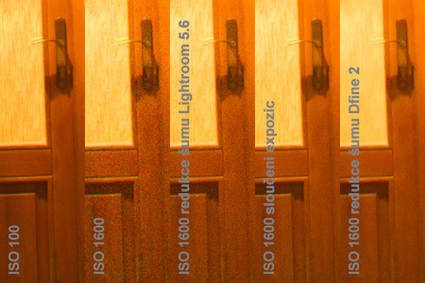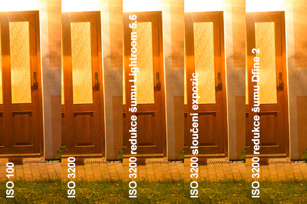 Při zpracování snímku jsem nejprve provedl odstranění barevné složky šumu v Adobe Photoshop Lightroomu, který tuto zcela odstraní bez vlivu na kresbu snímku. Ve snímcích tedy zbyla pouze jasová složka šumu, pro jejíž odstranění jsem použil metodu sloučení expozic. Té se budu podrobněji věnovat ve druhé části článku. Pro možnost porovnání účinnosti metody sloučení expozic jsem kromě této také provedl redukci šumu v Lightroomu (pro každou hodnotu ISO mám vytvořený speciální profil, který na fotografie aplikuji) a nakonec jsem ještě provedl redukci šumu v aplikaci Dfine 2 z balíku zásuvných modulů pro Photoshop Nik by Google. Ten měl za úkol simulovat automatickou redukci šumu, která běžně probíhá ve fotoaparátu. Nechal jsem tedy provést automatickou analýzu obrazu a následnou automatickou redukci šumu. Věřím, že při podrobném nastavení by bylo možno dosáhnout kvalitnějšího výsledku, ale i tak lze uvažovat o kvalitněji provedeném odšumění než je běžné při odšumění přímo ve fotoaparátu.