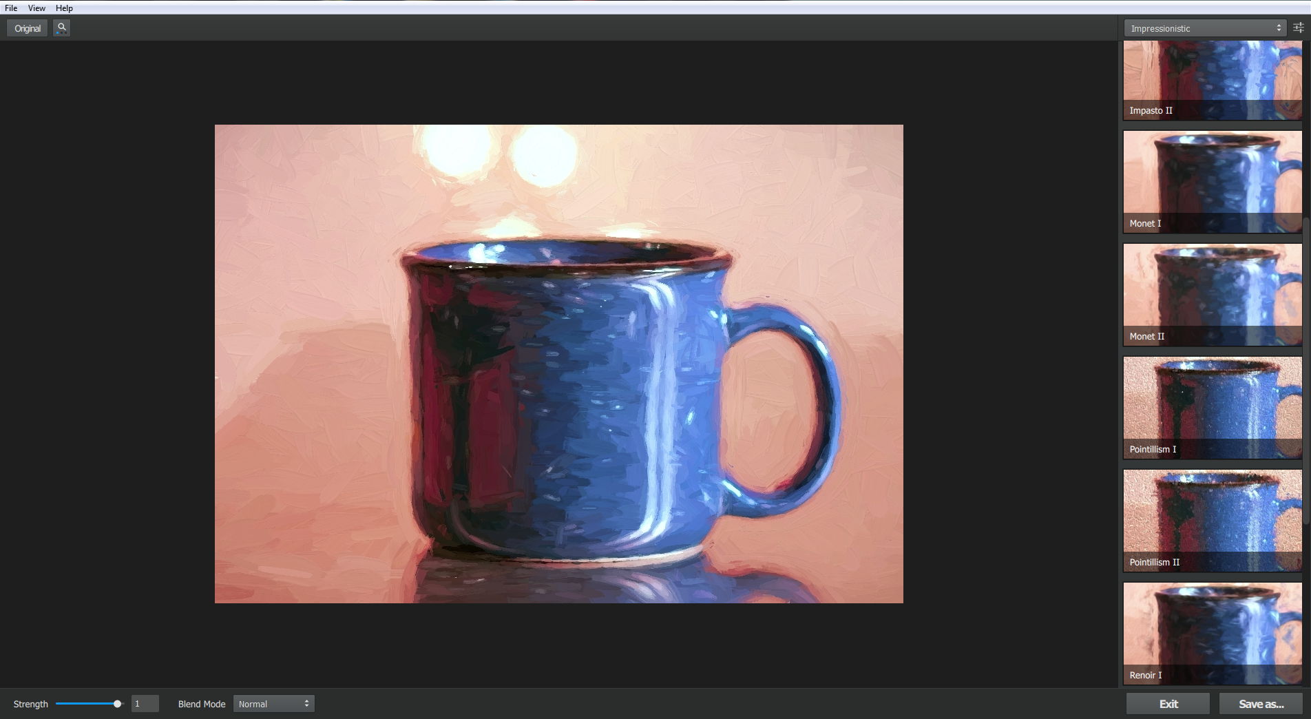 Do této již několik let stagnující situace nyní vstoupila právě společnost Topaz Labs svojí nejnovější aplikací Topaz Impression. A v porovnání s konkurenčními aplikacemi se jedná o vskutku revoluční řešení. Nejen, že je napodobení klasické malby či kresby velmi realistické, ale aplikace pracuje neuvěřitelně rychle. Náhled úpravy v plném rozlišení vidíme prakticky v reálném čase a můžeme tak velmi přesně řídit jednotlivé parametry převodu. Autoři naskenovali stopy štětců přímo z klasických výtvarných děl a tak je napodobení jednotlivých malířských stylů velmi věrohodné.