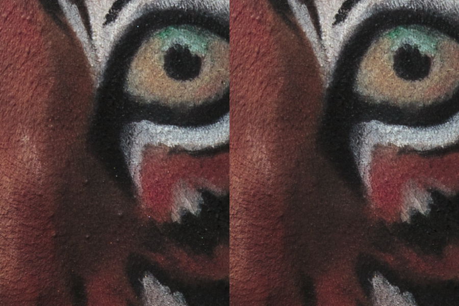 Výsledný obraz vypadá dosti hrozivě, ale hlavní je vytažení a zdůraznění kresby tygra. V obraze jsou patrná místa, kde jsem lokálně použil štětec ve Photoshopu ke ztmavení částí obrazu.