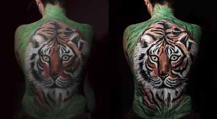 Já jsem se postup rozhodl demonstrovat na obrazu tygra namalovaného na zádech modelky. Vzhledem k tomu, že v tomto snímku nejde o modelku, ale právě o tygra, je aplikace HDR tónování na místě. Celý příspěvek